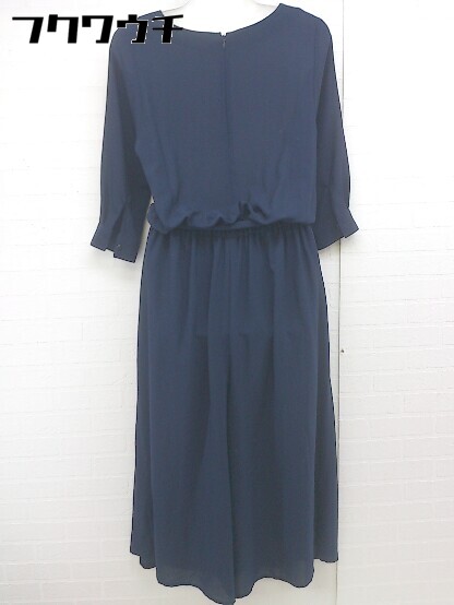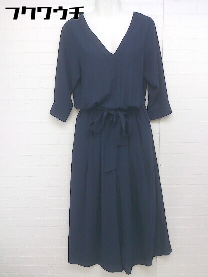 ◇ ◎ apart by lowrys バックジップ Vネック ウエストリボン 長袖 オールインワン サイズF ネイビー レディース 【中古】