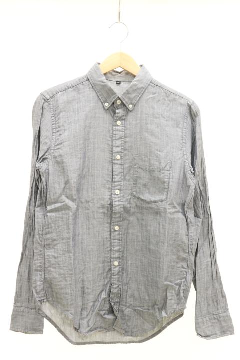 無印良品 ボタンダウン長袖シャツ無印良品 長袖シャツ M ライトグレー ストライプ メンズ 【中古】