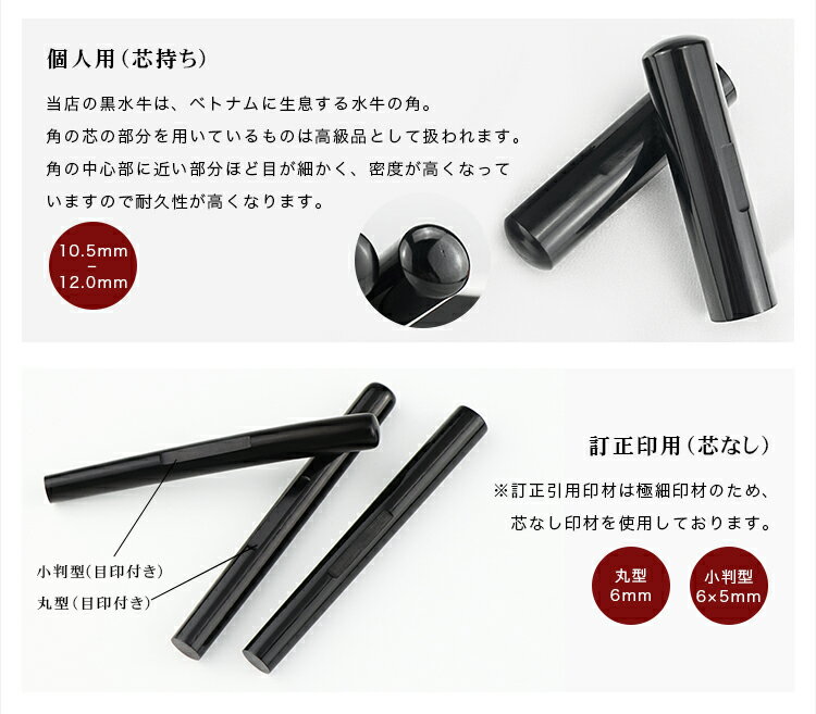 黒水牛目印付き印鑑 【送料無料】 【10年保証】 チタン:経年劣化が少ない現代的な印鑑材料です。