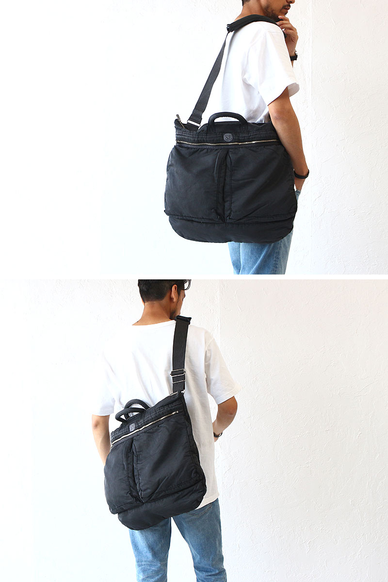 カラー 10ブラック / 40ブルー 素材 ナイロン 100% サイズ W47cm × H46cm 生産国 日本製 備考 【外装】 ・ファスナーポケット×1 (ポケット×2 内蔵) 【内装】 ・オープンポケット×2 ・ベルクロポケット×2 ・ファスナーポケット×1ポータークラシック スーパーナイロン ヘルメットケース PC-015-191 ナイロンを染色したオールドな表情が魅力のショルダーバッグ ナイロンを染色したオールドな表情が魅力の、ポータークラシックを代表するシリーズの 一つ「SUPER NYLON」のヘルメットケース。