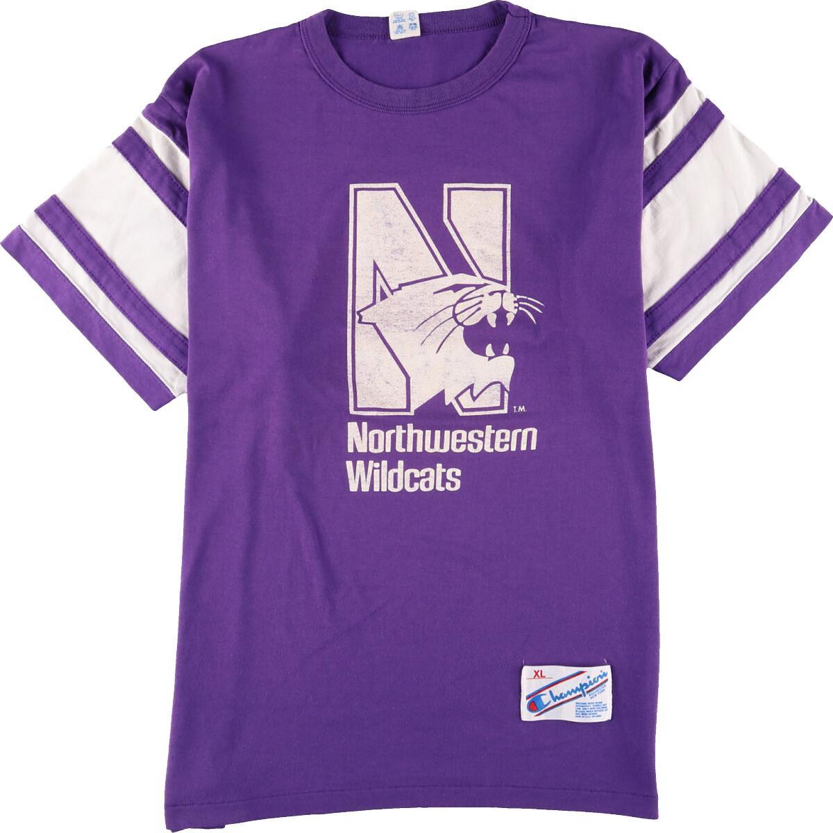 【9/1 24h限定 10%OFF&ポイント3倍!】 80's ビンテージ USA製 ■ Champion チャンピオン 3段 カレッジ プリント 半袖 Tシャツ ( メンズ 男性 M ) 古着 青 紺 ネイビー 80年代| 【USA古着】【古着】中古 アメリカ製 プリントTシャツ 半袖Tシャツ ブルー トリコタグ カレッジ 詳しく見る