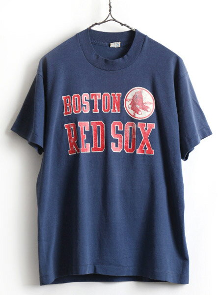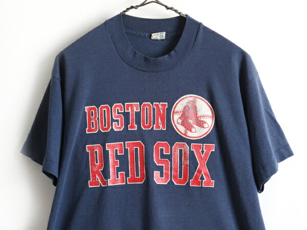 【9/1 24h限定 10%OFF&ポイント3倍!】 80's USA製 ビンテージ ■ Champion チャンピオン MLB ボストン レッドソックス プリント 半袖 Tシャツ ( メンズ L ) 古着 半袖Tシャツ 紺| 中古 80年代 男性 アメリカ製 半袖Tシャツ プリントT プリントTシャツ ロゴT メジャーリーグ
