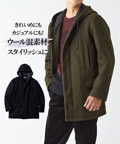 アウター コート メンズ M-10Lサイズ ウール混メルトンフード付コート きれいめにもカジュアルにも! 大きいサイズ メンズ トップス ニッセン 【送料無料】 【ポイント倍付け中!】