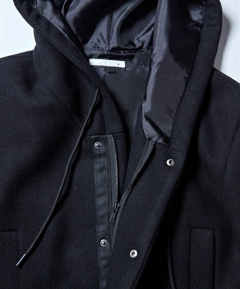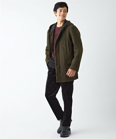 素材 品質=カーキ:ポリエステル65%・毛30%・その他5%(織物 メルトン) 黒:ポリエステル60%・毛30%・アクリル5%・その他5%(織物 メルトン) [裏地]有(総裏) 原産国 中国製 メーカー品番 ZZY4C21E0107 コメント きれいめカジュアルにぴったりな、フード付きのウール混コート。