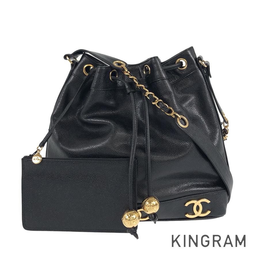 【最大3万円OFFクーポン配布中!】シャネル CHANEL 巾着 ポーチ付き トリプルココマーク ブラック×ゴールド キャビアスキン ショルダーバッグ srib【中古】